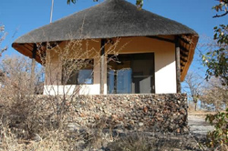 thatched chalets overlooking a vast valley of game and the hills of Etosha.