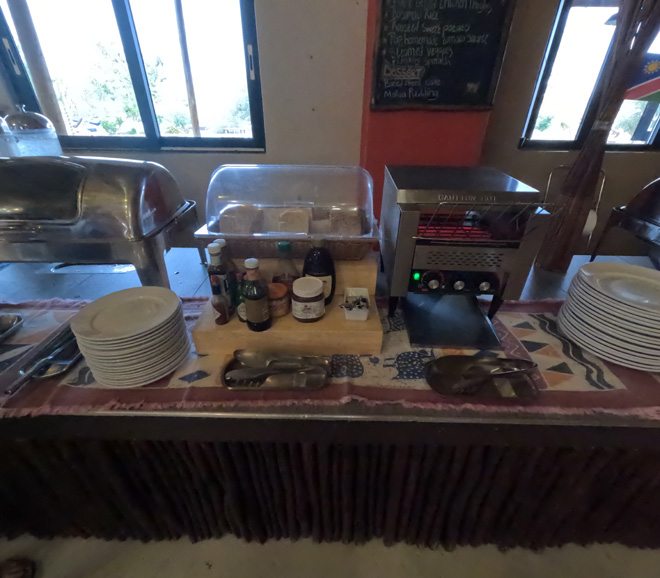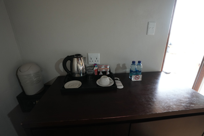 A strong desk fan provides air circulation, and a portable lamp is available for emergencies. Two extra blankets are provided for the colder nights. Two chairs are also included inside the room, with two additional chairs on the veranda.