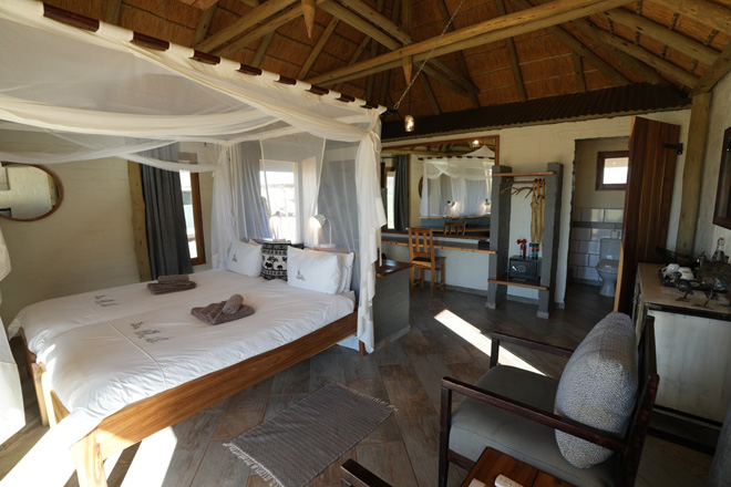 Desert Homestead offers thatched, en-suite chalets, all luxuriously decorated