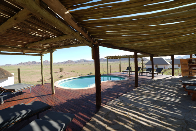 a view reaching the distant dunes of the Namib Desert in the west.