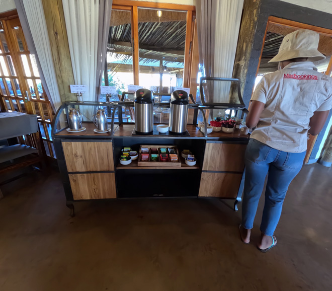 Inside, you will find a cosy lounge with ethnic African decoration and